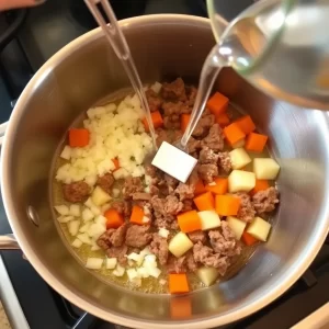 - Lisää joukkoon pilkotut porkkanat ja perunat.